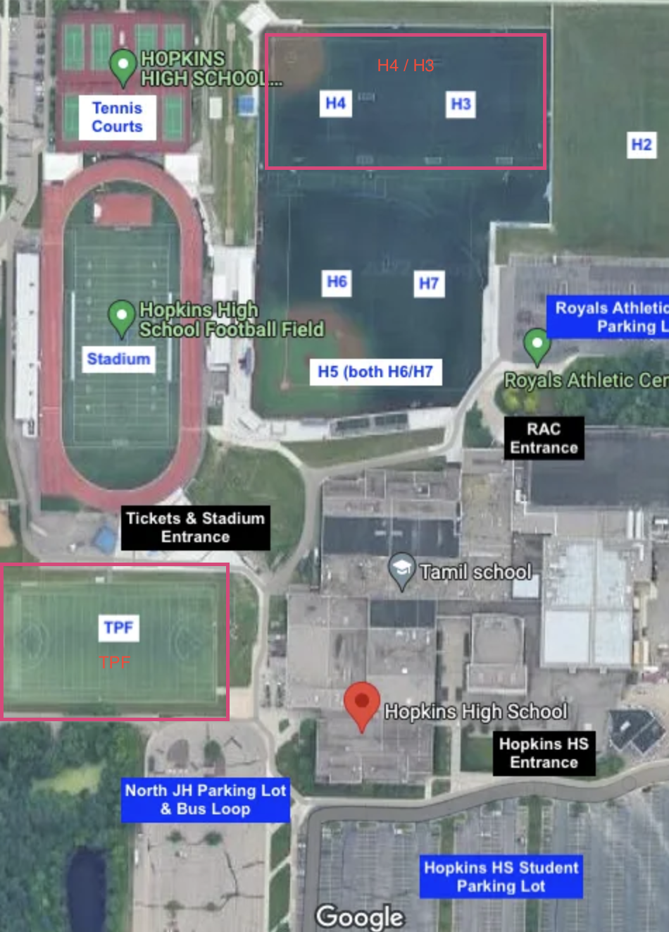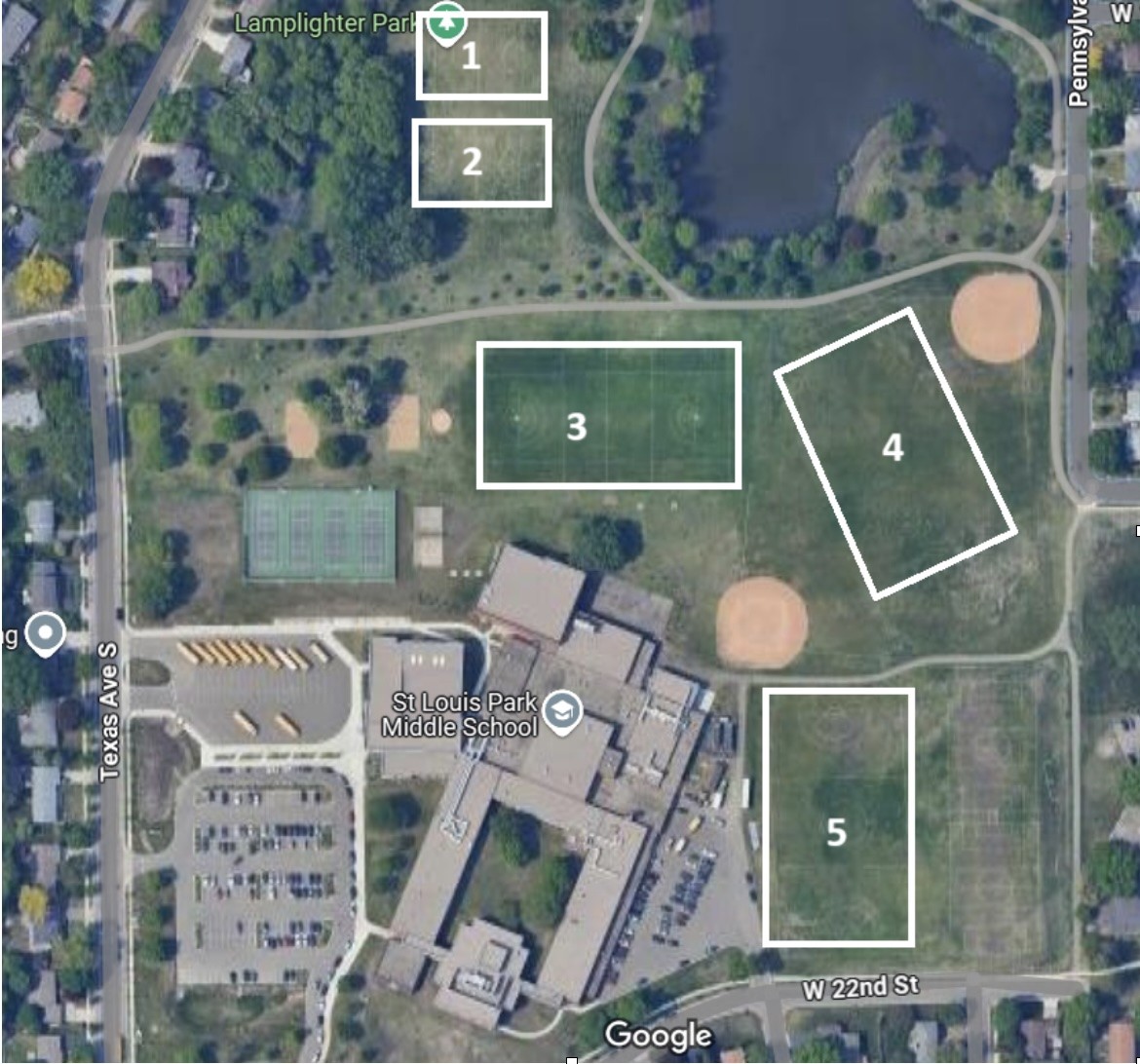 - Fields 3 & 4 - Park in the Middle School lot (off Texas Ave) or the Park Harbor Lot